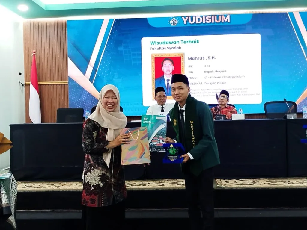 Salah satu lulusan terbaik, Mahrus, S.H., dari Prodi HKI dengan IPK 3,73, menyampaikan rasa syukur sekaligus pesan inspiratif kepada rekan-rekannya.